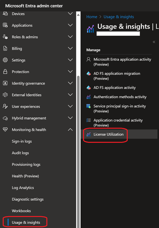 In the interim, if you want to start leveraging this capability, connect to your Entra ID portal (https://entra.microsoft.com/) to access the Monitoring & health\Usage & insights\License Utilization blade