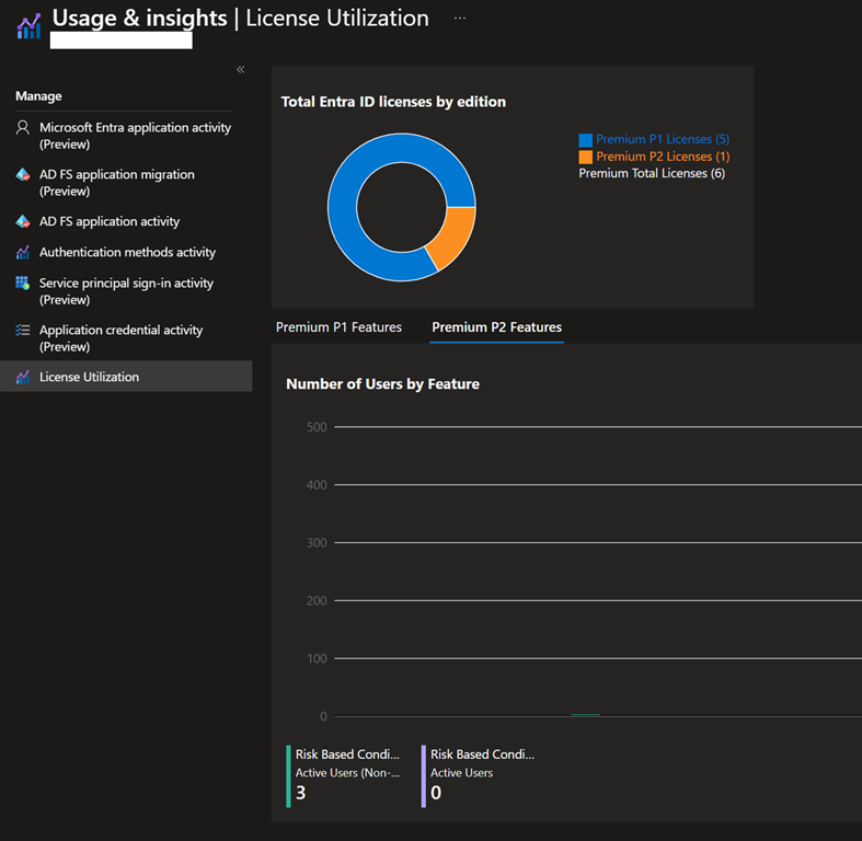 With this feature, you will get usage information of your Entra ID premium licenses as well as the usage of corresponding features, such as Conditional Access or Risk Based Conditional Access.