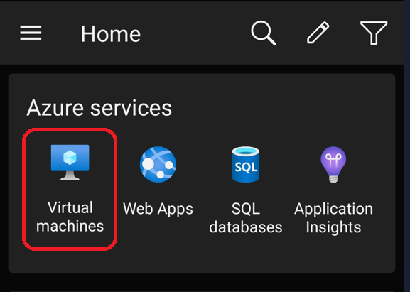 To do so, open the Azure mobile application to access the virtual machines list from the Azure services list