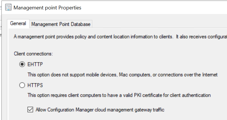 - HTTP-only communication is now deprecated and replaced by Enhanced HTTP (EHTTP) – you can learn more about EHTTP here Enhanced HTTP – Configuration Manager | Microsoft Learn