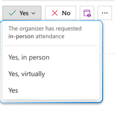 This new option also allows attendees to respond if their are going to join online or in-person.