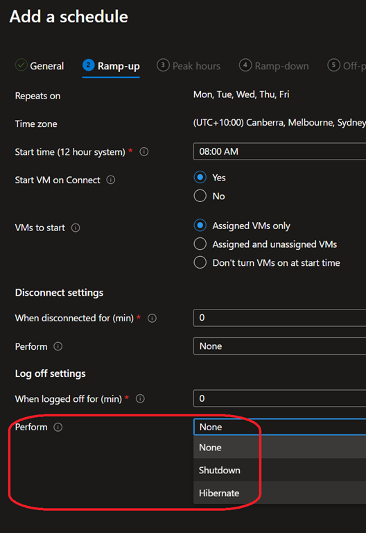For existing host pool, this can only be done using either PowerShell, CLI, ARM, SDK or APIs – not through the Azure portal by setting the OffPeakActionOnLogoff parameter to Hibernate.