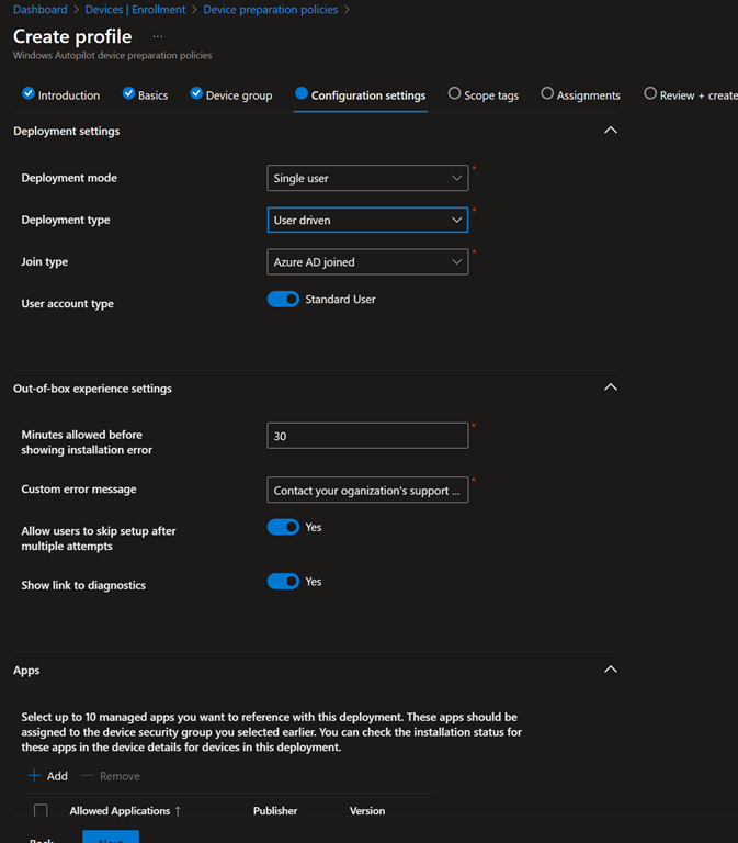 - Defined the mandatory applications and scripts to be deployed during the Autopilot phase