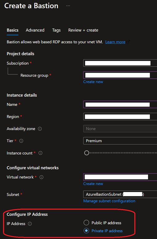 When deploying Azure Bastion, you have to choose the Private IP address option for the Configure IP Address section