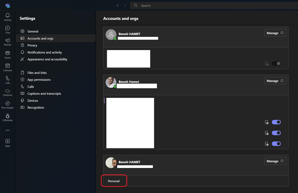 Well, good news as the Teams client (corporate – M365 one) is now able to allow you to add your personal account account into it – giving you the same functionality than the Teams (personal) client.