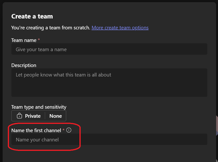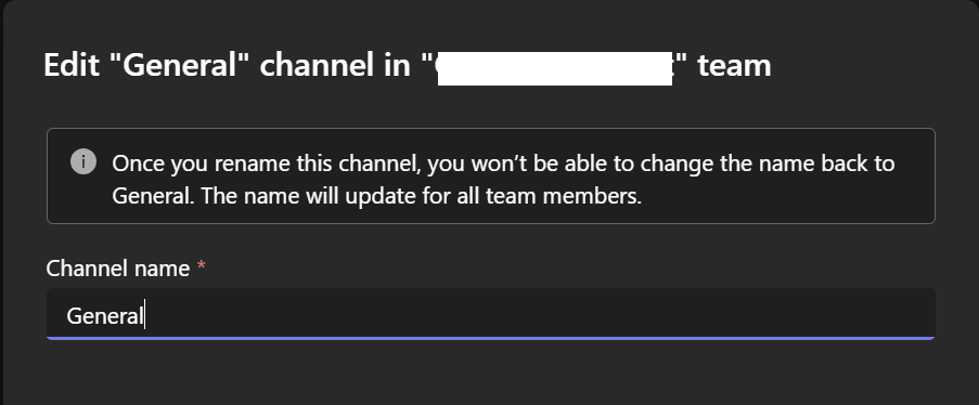As you know, when you create a new Teams it automatically create a new default channel (aka first channel) called General.
