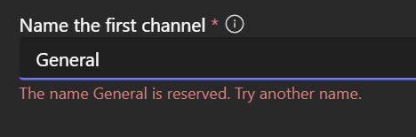 A side note when naming the first channel, you can not use General as name as it is a reserved name