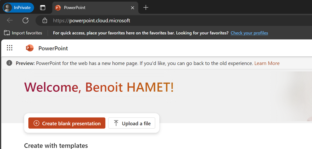- PowerPoint new URL: https://powerpoint.cloud.microsoft.com