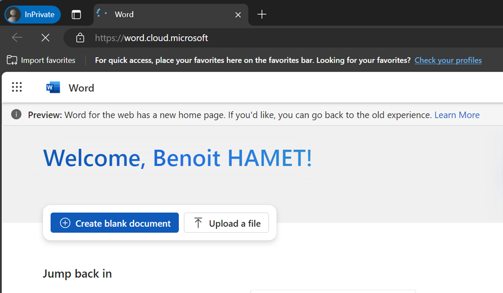 There has been already few services moved under this umbrella – such as health status portal or the O365 administration portal (see Office 365 – Transitioning to cloud.microsoft domain (hametbenoit.info)), now it is the turn for some end-users facing services: Office on the Web.