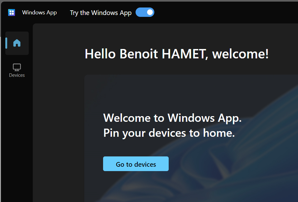 The Windows App application provides access to both Azure Virtual Desktop and M365 Desktop within the same client, rather than having to use multiple clients.