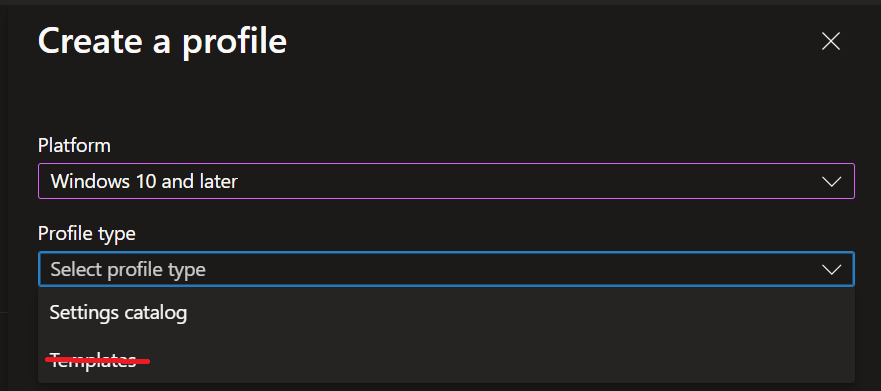 Starting this release, you will not be able to create new Templates type based configuration profile.