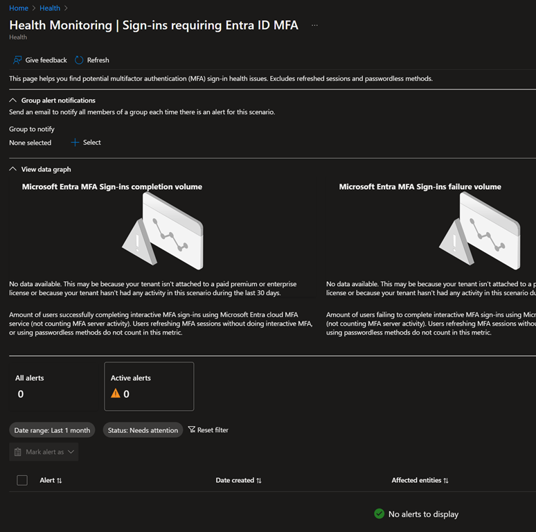 This dashboard is available from the Entra ID portal (https://entra.microsoft.com/) by accessing the Monitoring & health\Health blade.