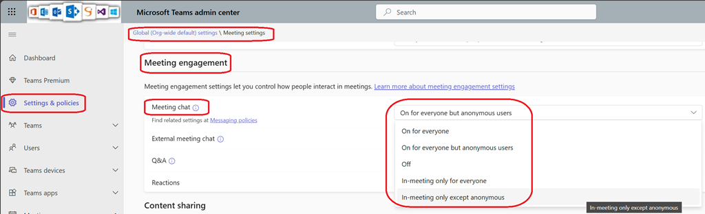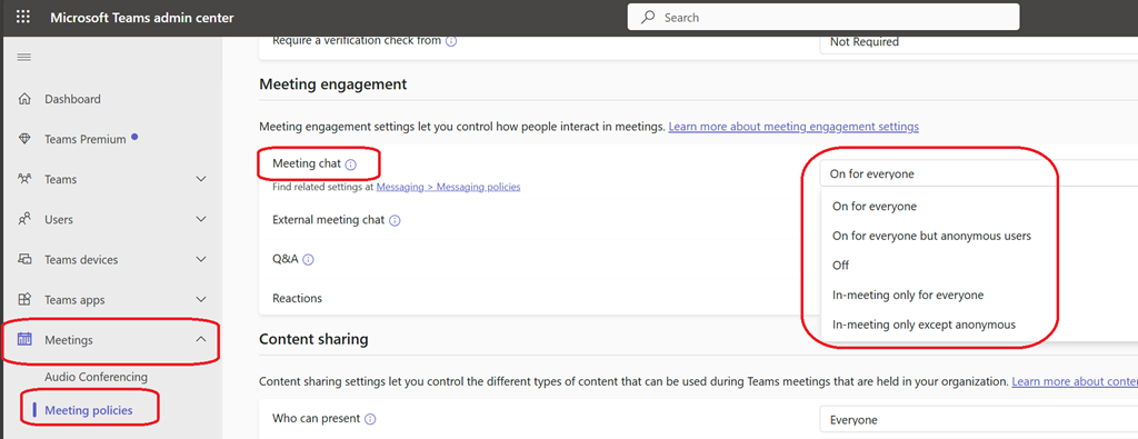 Well, to help avoiding potential data leak from Teams meeting chats, a new policy is now available to disable ability to send chat messages to Teams meeting before and after this meeting for specific peoples (everyone or anonymous only).