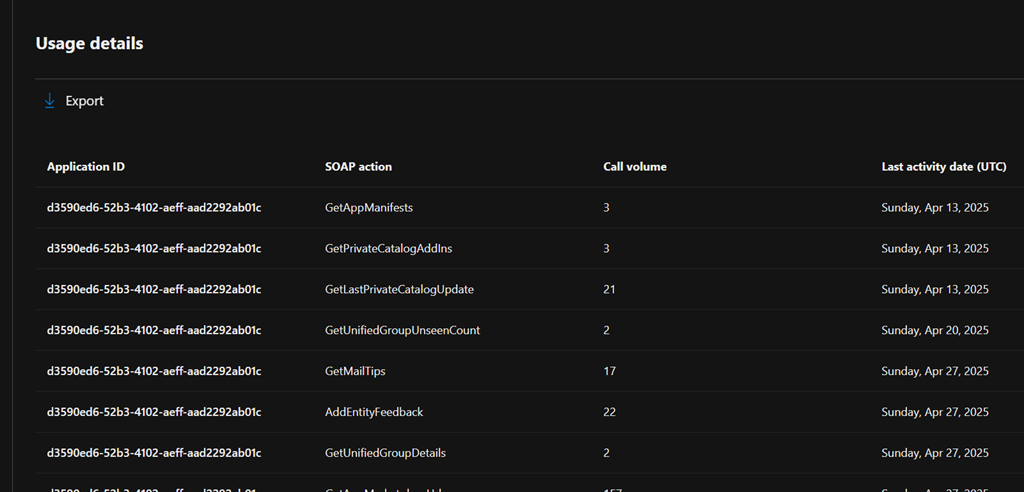 For more details about the report you can read this documentation Microsoft 365 Reports in the admin center – EWS usage – Microsoft 365 admin | Microsoft Learn