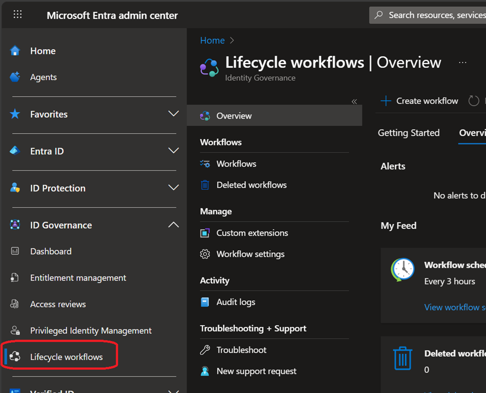 Once you meet the prerequisites, you can create a new lifecycle workflow to manage inactive accounts by connecting to your Entra ID portal (Microsoft Entra – Microsoft Entra admin center) to access the ID Governance\Lifecycle workflows blade