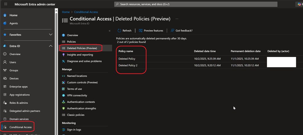 Well, good news as Entra ID is now capable to list and recover deleted conditional access policies