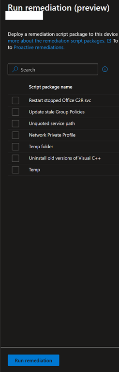 Well, good news as Microsoft has improved (for new in preview with the limitation around supportability) the remediation scripts capability to allow you running them on demand and on a specific device.